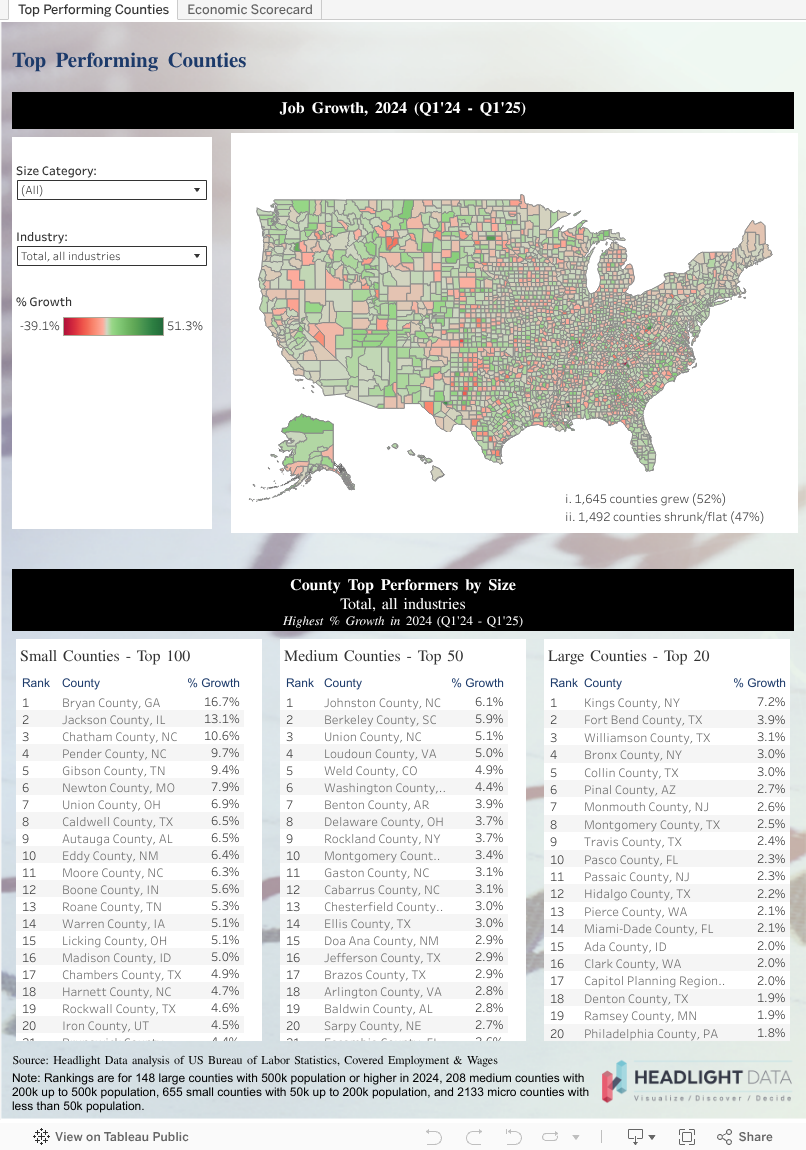 Choose a size category and industry to generate the rankings. Download a PDF of this Tableau by clicking the “Download” button in the bottom-right corner.